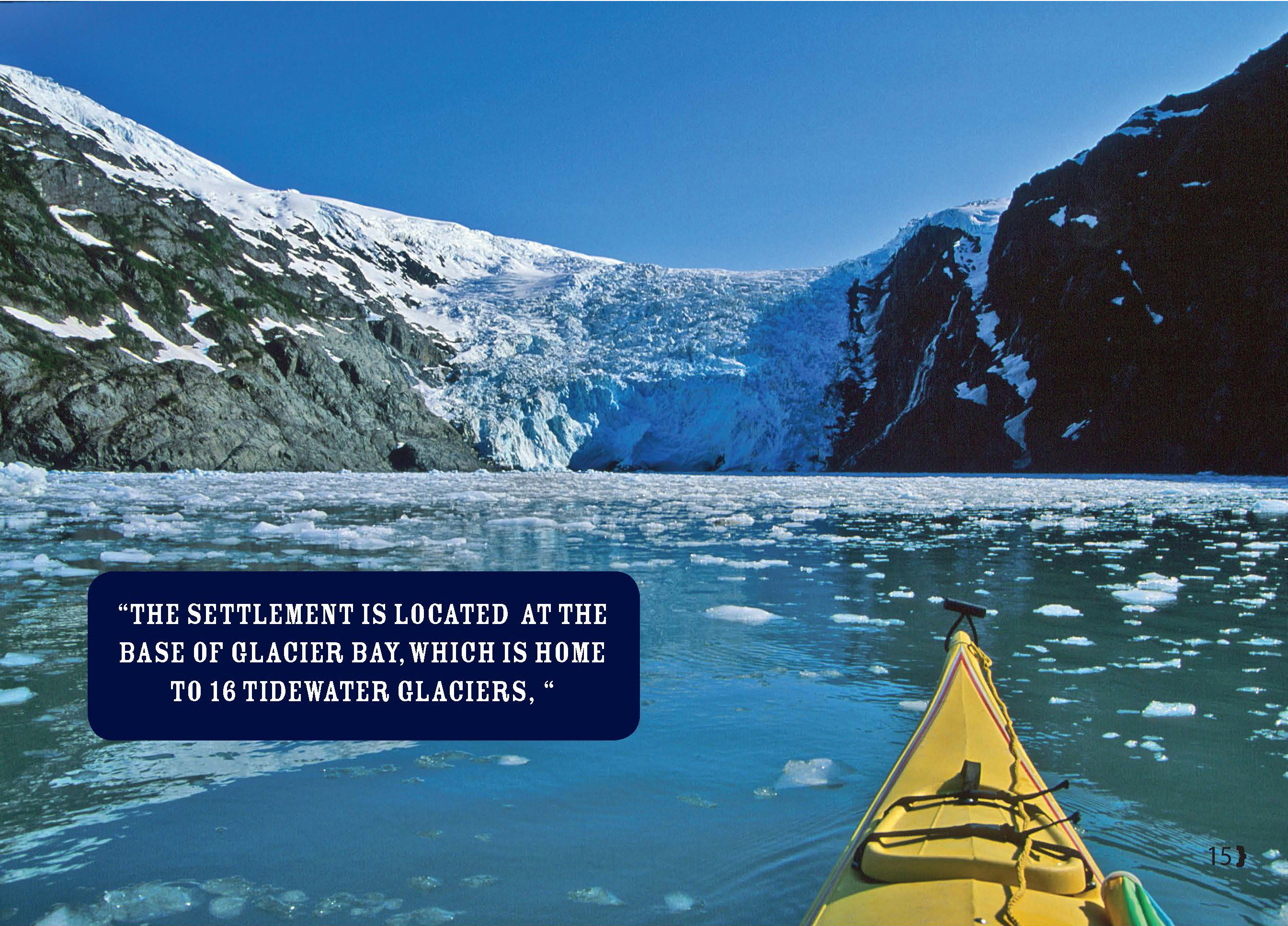 is located at the base of Glacier Bay, which is home to 16 tidewater glaciers, and is located across the Strait from Chicagof Island and the humpback Whale mecca of Pt. Adolphus. The town itself consists of a petrol Station, Hardware Store, Café, grocery Story, School Post Office and a few Bed and Breakfasts. Glacier Lodge is the only accommodation within the Park Boundaries, and that’s about it.